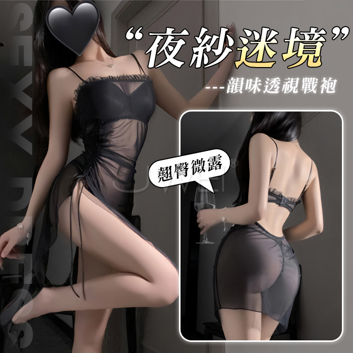 此款粉紅柔紗V領二件式性感睡衣,採用薄透的柔紗材質, 低胸V領再加上白色緹花蕾絲,