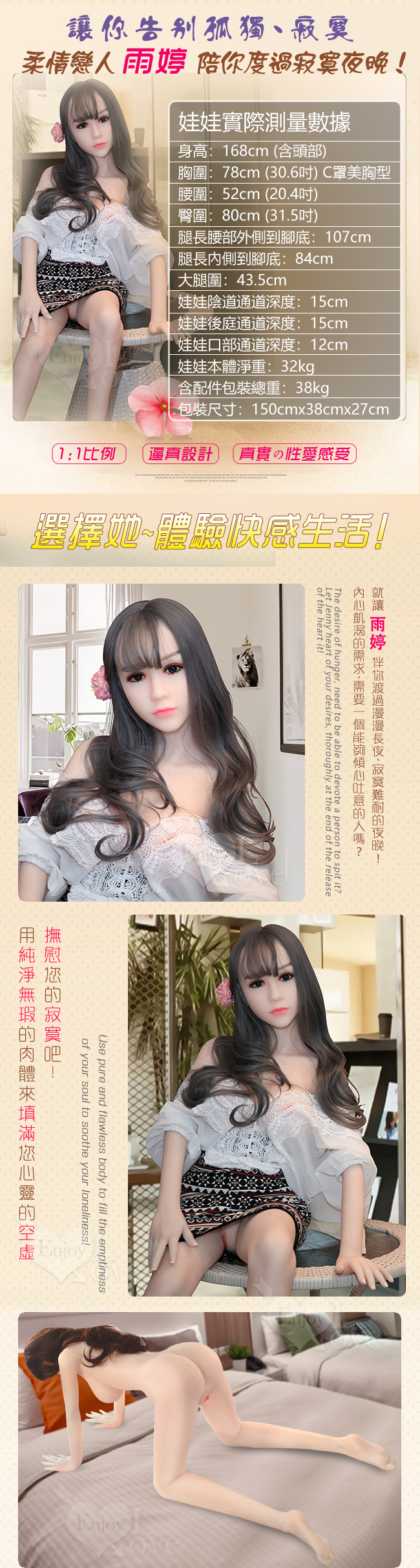 ►您現在的位置:首頁>《 雨婷 Yu Ting - 柔情戀人 》全實體矽膠真人智能版愛娃 5大特點+5種互動功能﹝168cm / 32kg﹞