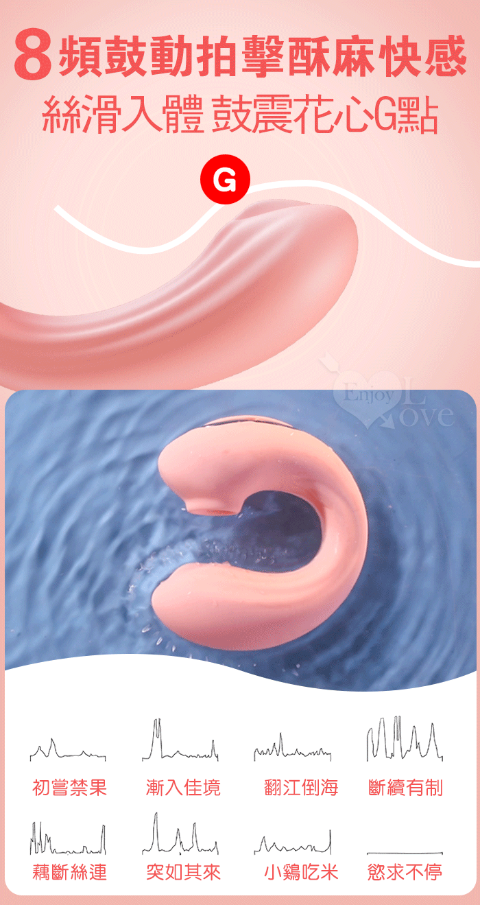 JIUAI 失控G點棒 鼓動款 ‧ 8X8 拍擊震+吸吮舌撩 雙重體驗穿戴G點按摩器 - 氣氛燈磁吸充電魔盒﹝櫻花粉﹞