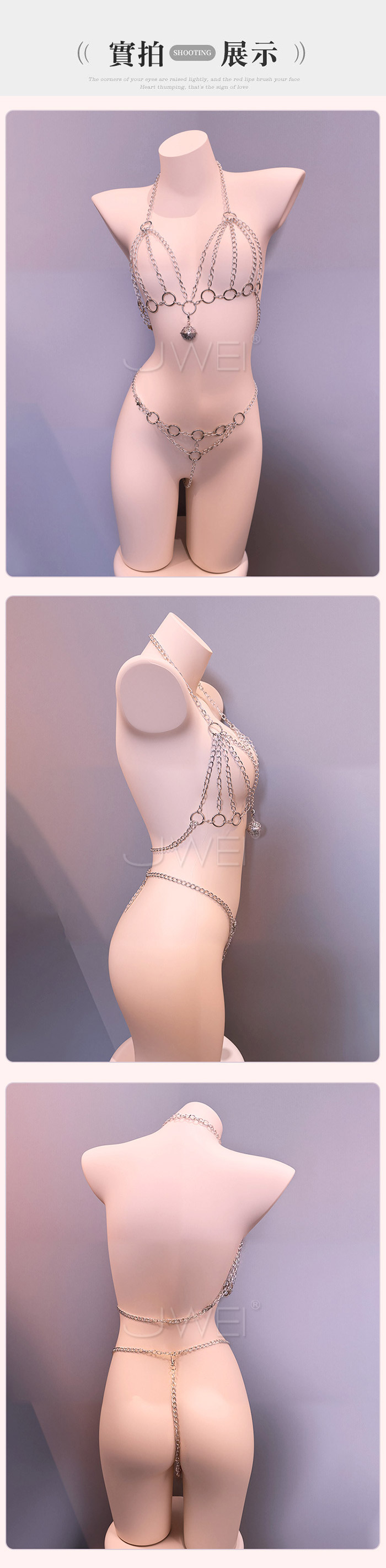 火辣熱鍊.性感三點分體式鎖胸束縛鈴襠金屬鏈衣