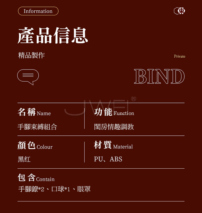化身“調情大師”更多情趣等你來開發~懲戒束縛,手腳束縛4件套 蒙眼調情 遮蔽視覺,皮質柔軟更貼合自適應彈力綁帶 透氣口塞 禁言嗚咽,多孔透氣防嗆喉 多尺寸調節易穿戴 手腳束縛銬,手腳併縛分腿助力 輔助緊縛穿戴自如 產品規格 ■材質: PU+ABS ■規格: 詳情如圖示 ■功能: 閨房情趣調教