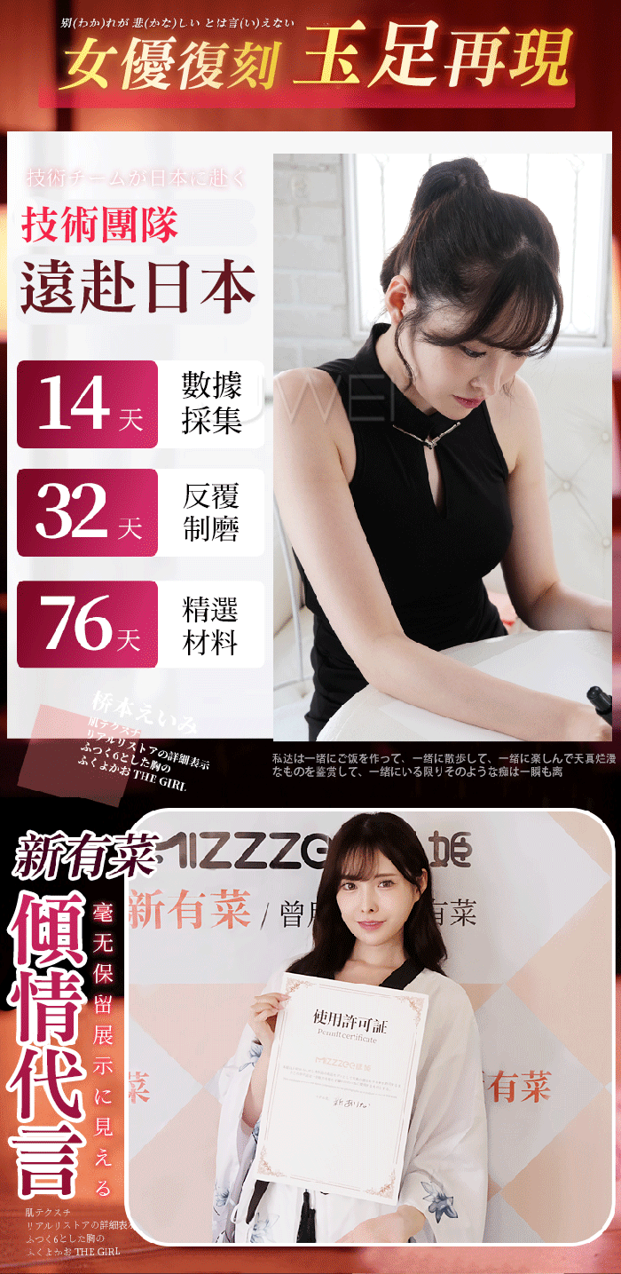 橋本有菜 玉足.真美足 1:1仿真尺寸 青筋皮紋細節復刻 逼真陰部內置龍骨 雙色單穴自慰套【左腳】