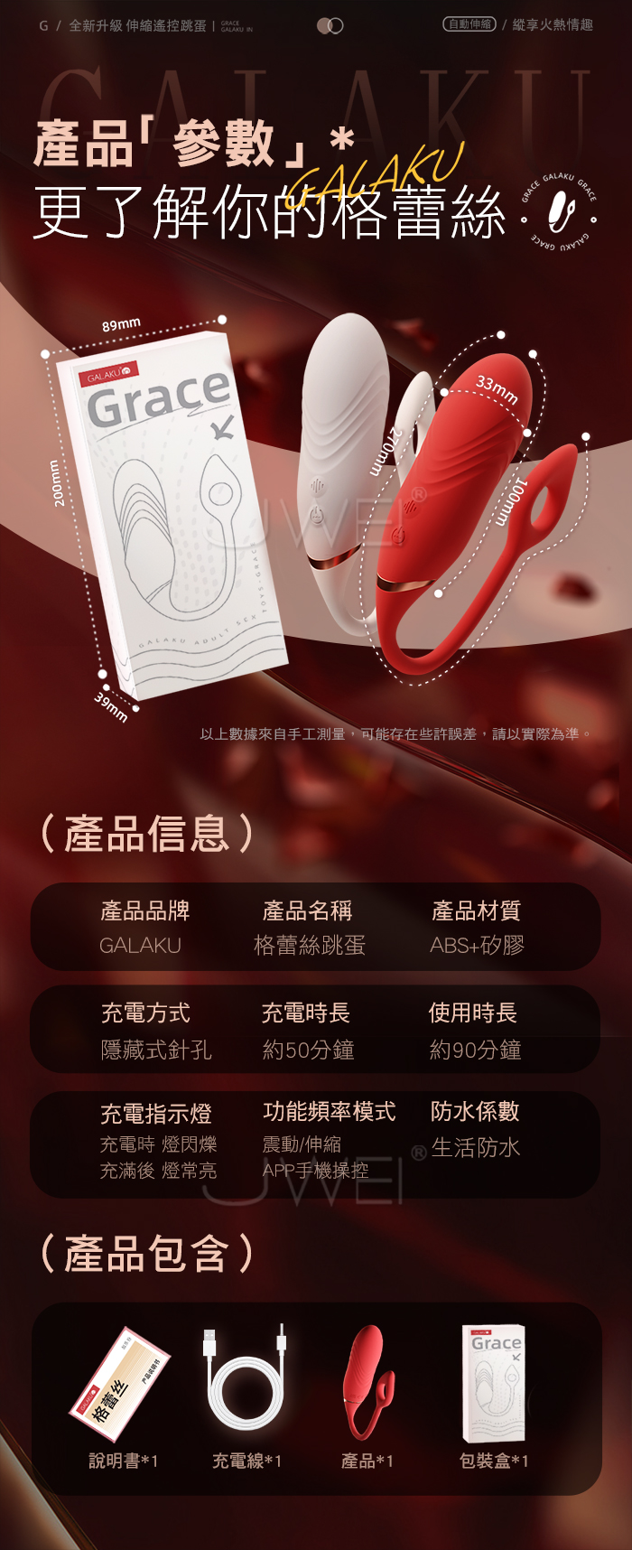 GALAKU.格蕾絲 10段多重強震3段全自動靈活伸縮 智能遠控潮玩跳蛋【紅色】