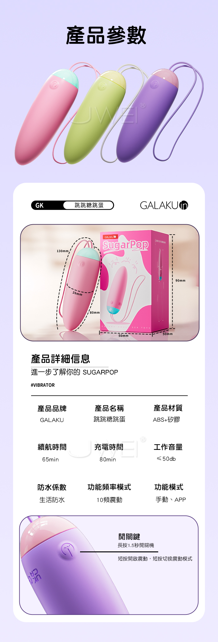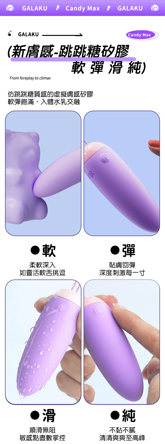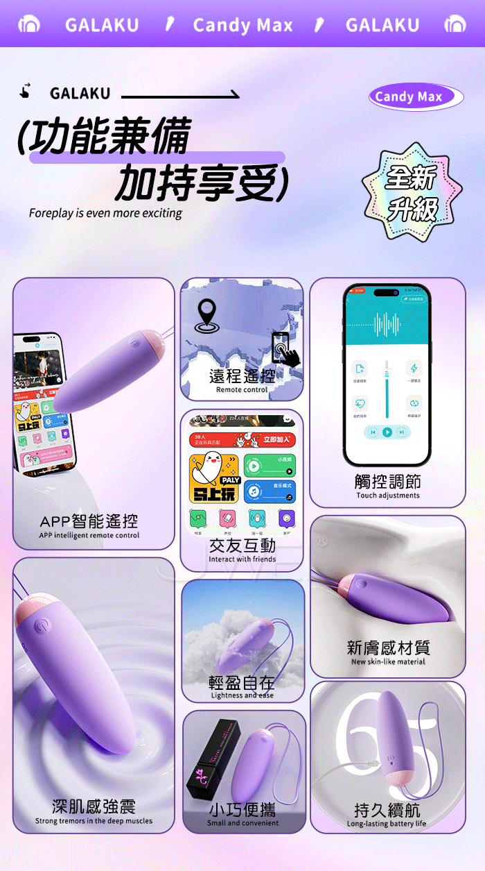 ►您現在的位置:首頁>GALAKU.跳跳糖 10頻爆跳穿透強震 深肌快感 加厚矽膠變頻跳蛋【AI智控款-紫色】