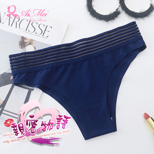 | 親密物語!絲滑冰絲條紋褲頭低腰三角褲﹝深藍﹞