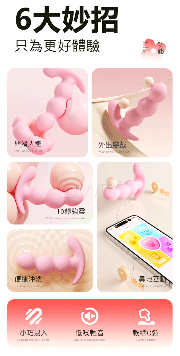 | 緋櫻.10頻穿透強震穿戴拉珠 新手爽玩APP異地遙控後庭按摩器