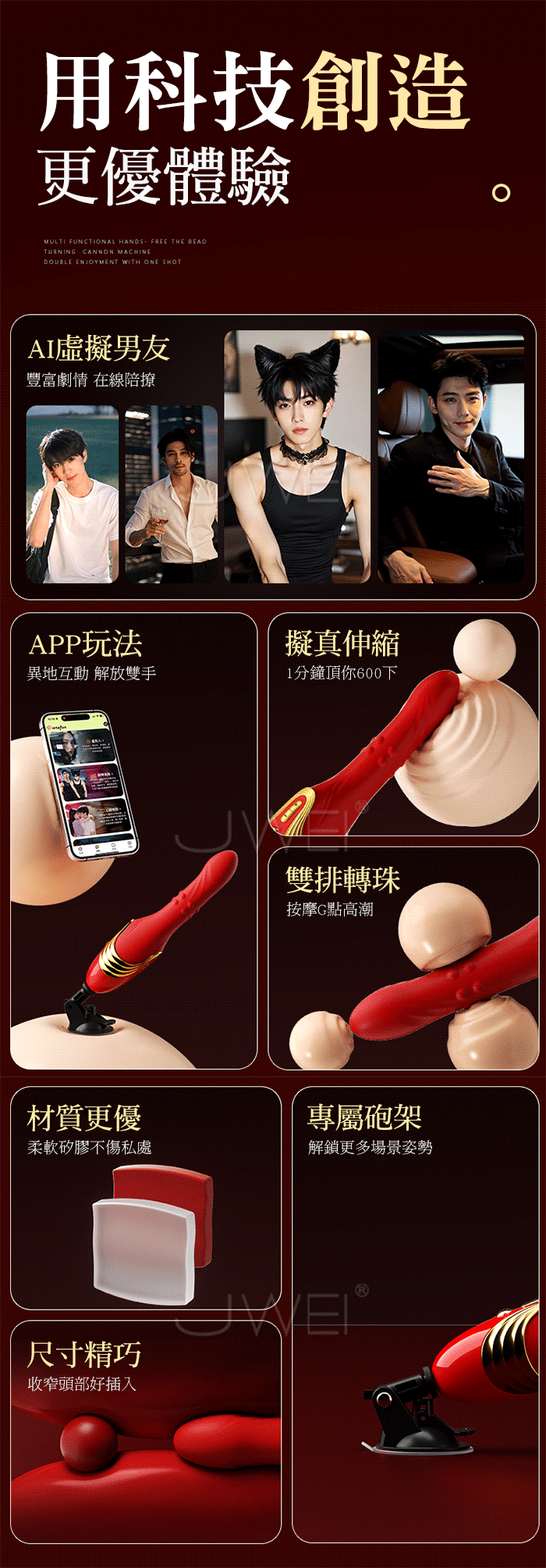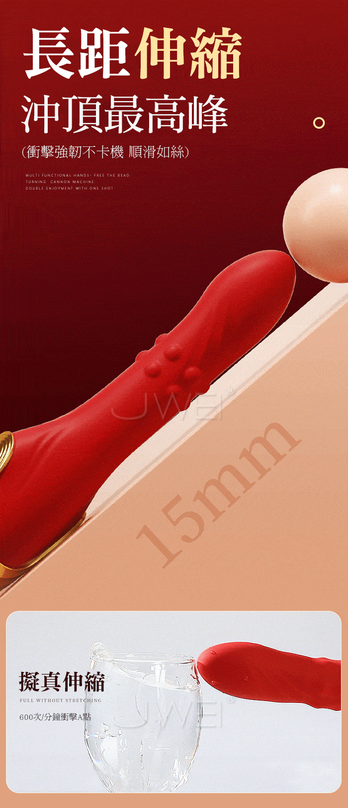 一炮多玩,秒帶你激情享潮,超牢固吸盤底座 支援多種體位PLAY~ 雙排滾珠快感加倍,滾珠不斷刺激G點 就會一波接一波的快感 長距伸縮,衝頂最高峰,衝擊強韌不卡機 順滑如絲!! 動感強震酥到發顫,纏綿撩人到激盪愛河,開啟全自動高潮~ 產品規格 ■尺寸:大小詳如圖片標示 ■材質:矽膠+ABS ■特點:10頻震動、10頻伸縮、10頻轉珠、APP智控