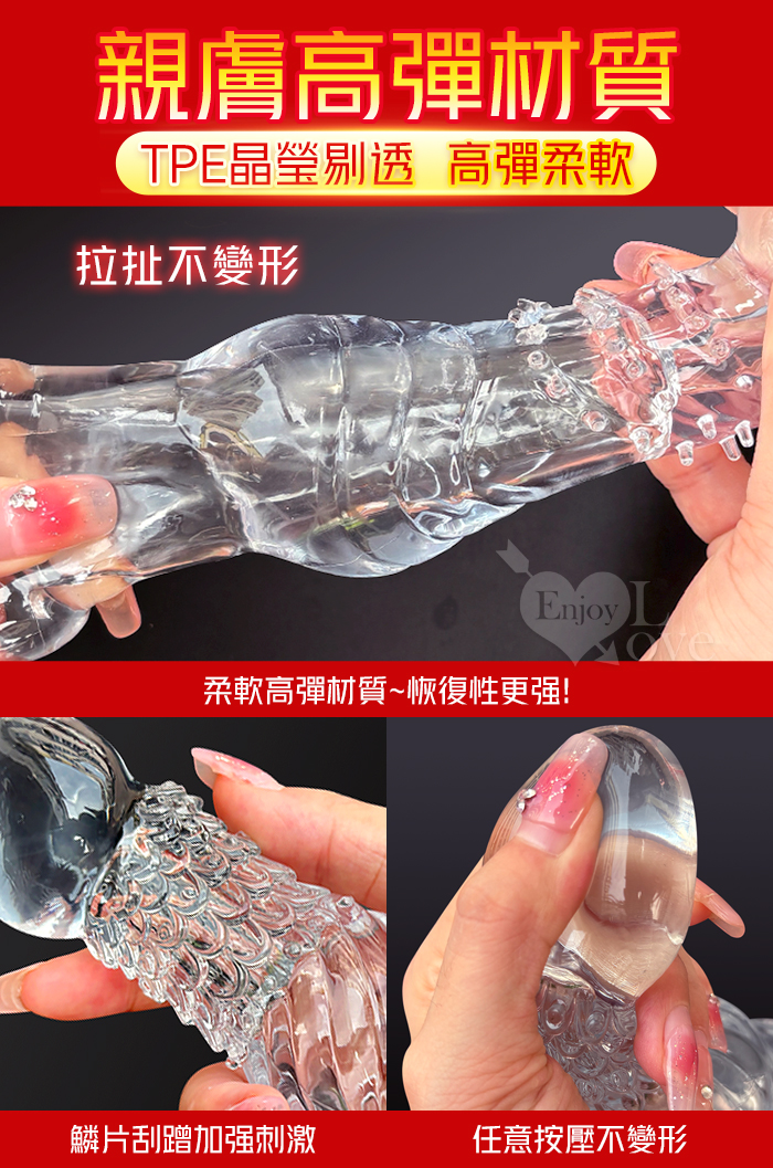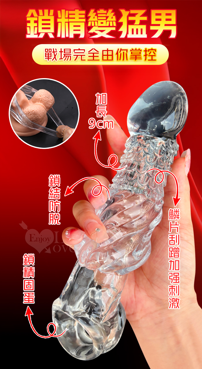 | 取悅 ‧ 龍結套 龍麟刺激~長時堅挺`前端實心變粗變大加強套﹝增長9公分+凸粗+束精+套蛋﹞