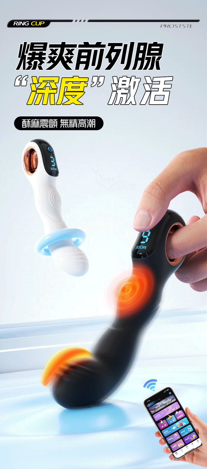 ROSELEX 指環前列腺~深度激活後庭按摩器-液晶視屏顯示10頻震動/可手機APP遙控