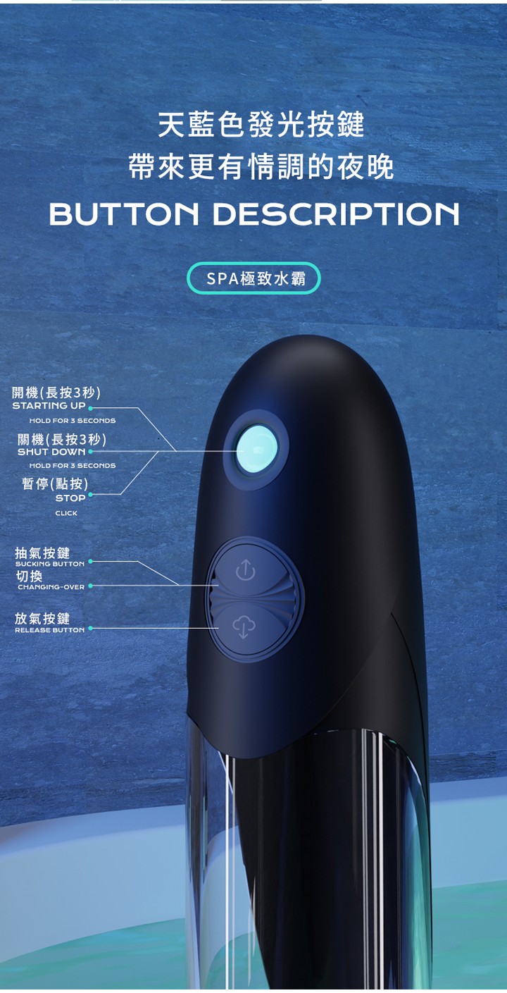 • 使用方法:將陽具放入幫浦後,啟動開關即可