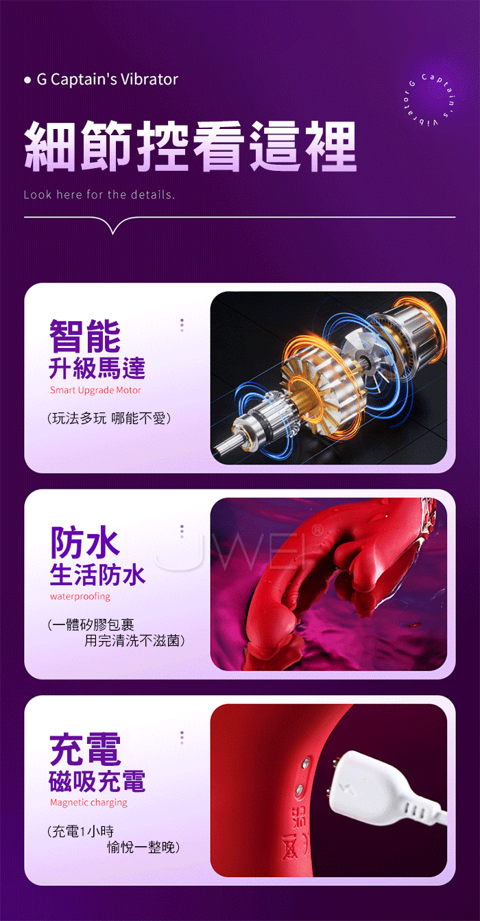摸G校尉震動棒,內外齊爽高階的玩法,咬舐+摸動+震動用過的都說爽 包裹啃咬唇舌交替咬舔,濕潤翻轉攪動私密處,同步喚起私處酥麻點 扣摸G點,在密道内摸出你的快樂,模擬指腹紋路左右撫摸豆豆讓你快感連連~~ 產品規格 ■材質: ABS+矽膠 ■規格: 詳如圖片標示 ■特色: 10頻震動、5頻摸G、3頻咬合、加溫