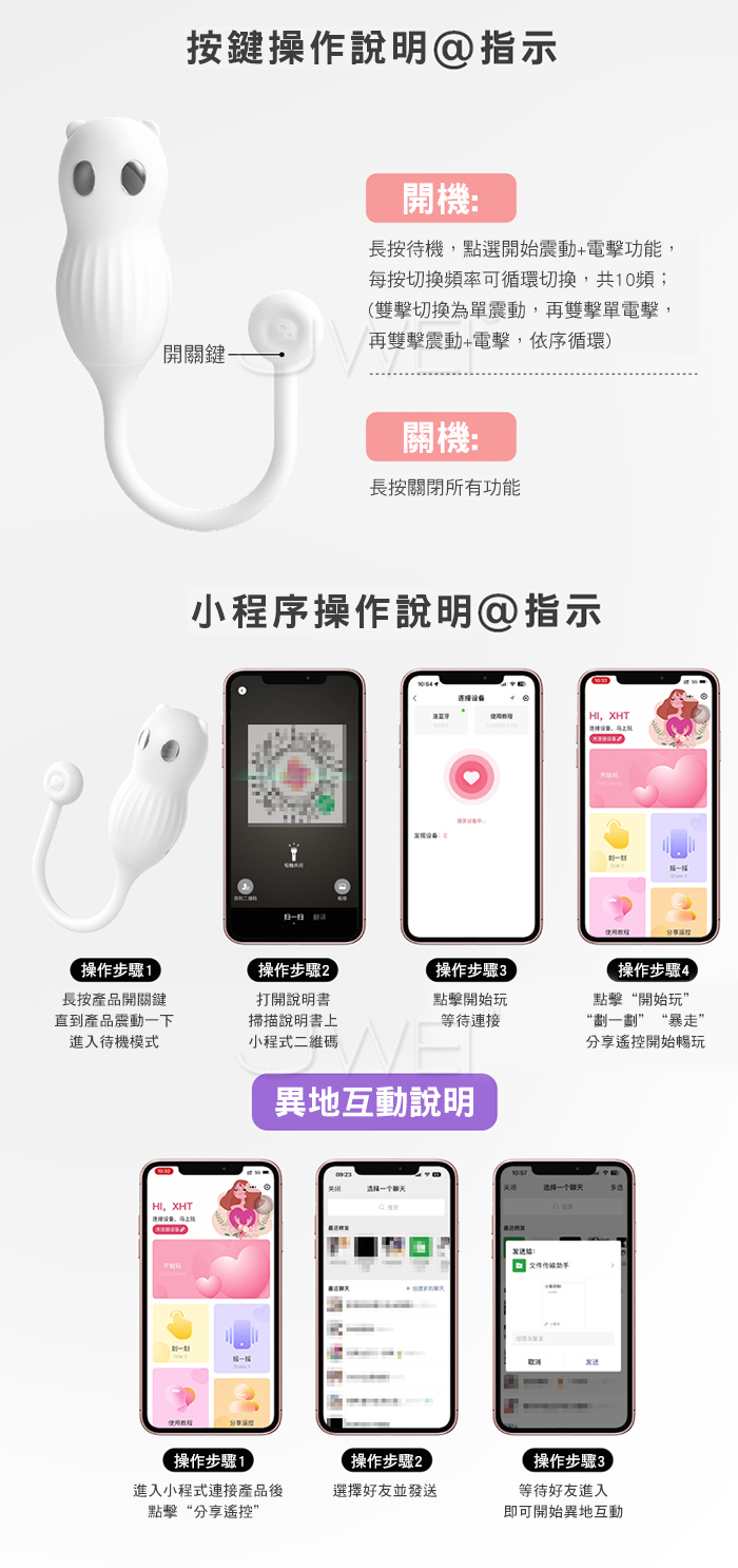 謎姬 MizzZee.小熊.10x10段穿透式酥震+微電流刺激 APP異地互動電擊跳蛋