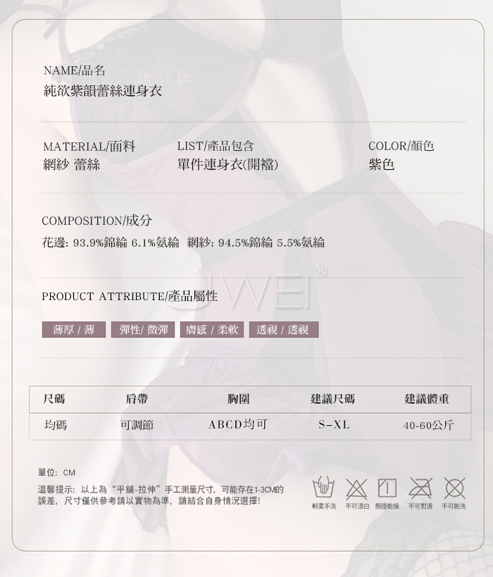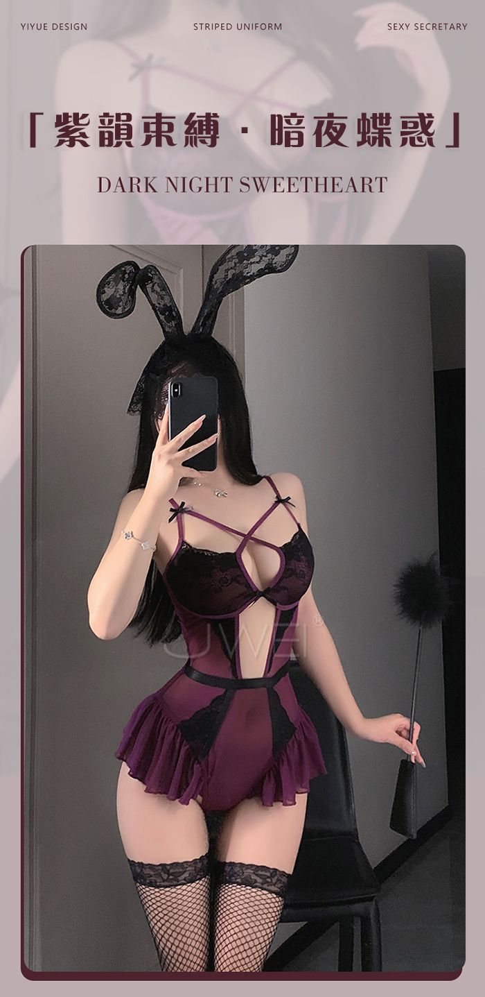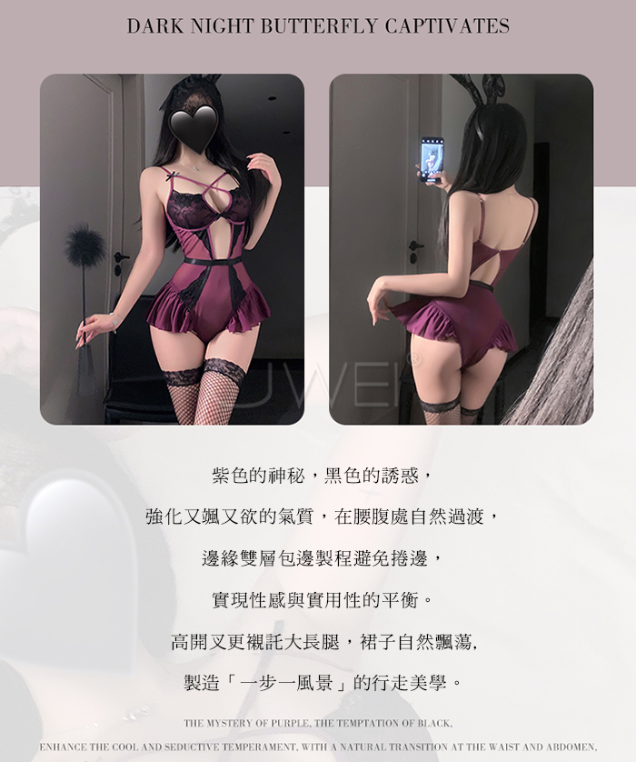 ►您現在的位置:首頁>紫韻蝶惑.純欲交叉挖胸蕾絲雙層包邊小裙襬連體衣