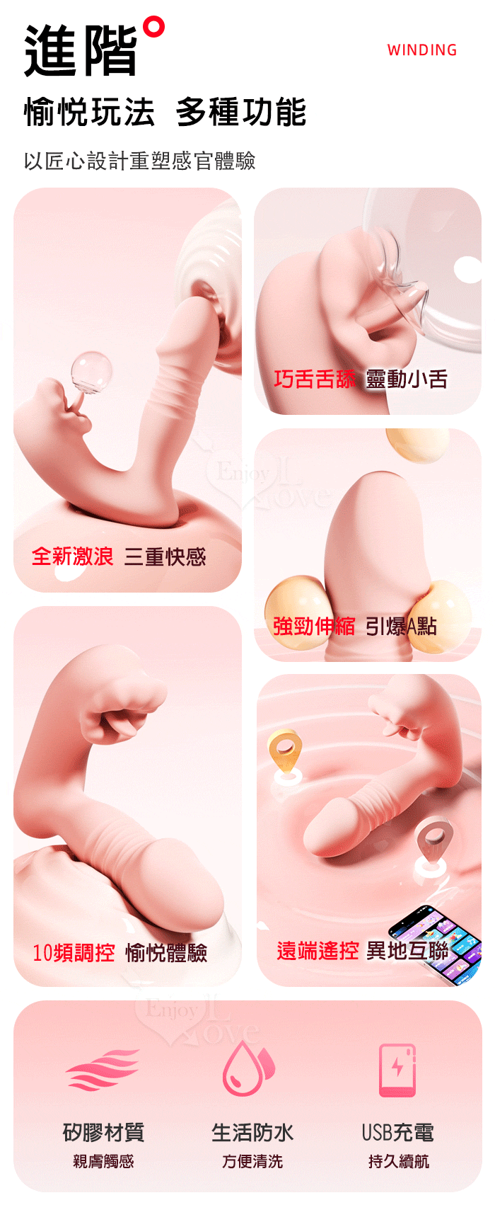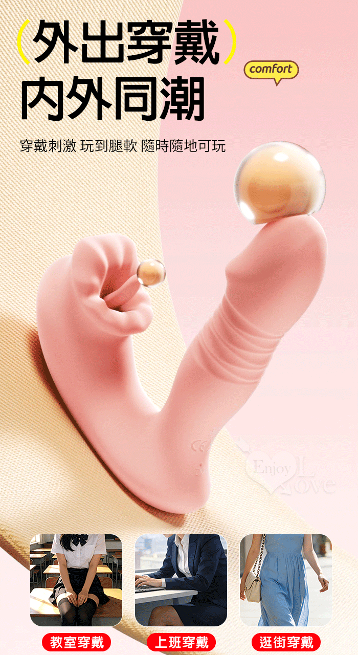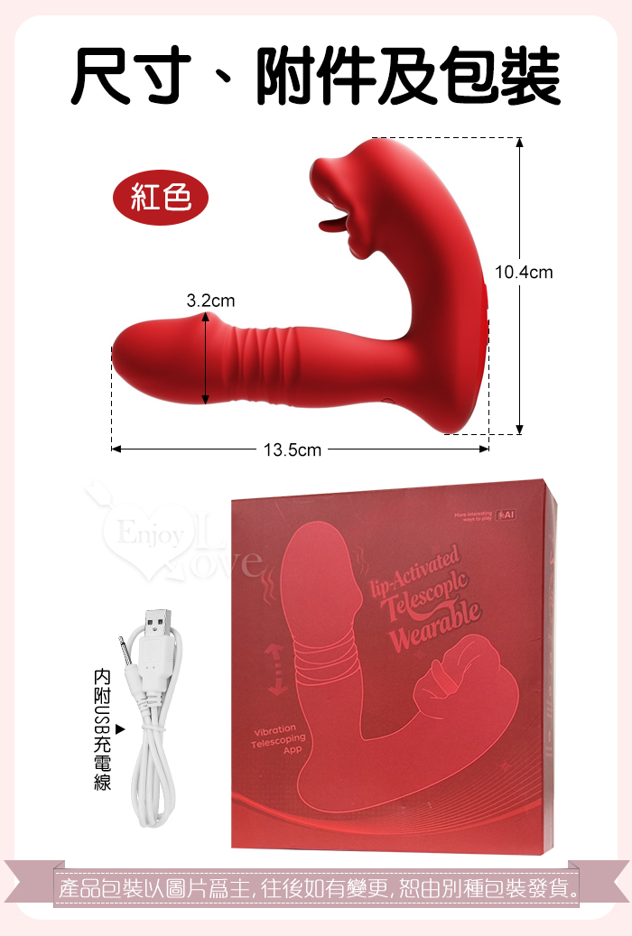 ROSELEX 上舔下頂 入體伸縮舔震三合一 10頻雙馬達貼合穿戴按摩器 - 可手機APP遙控﹝具兩種操控模式﹞紅