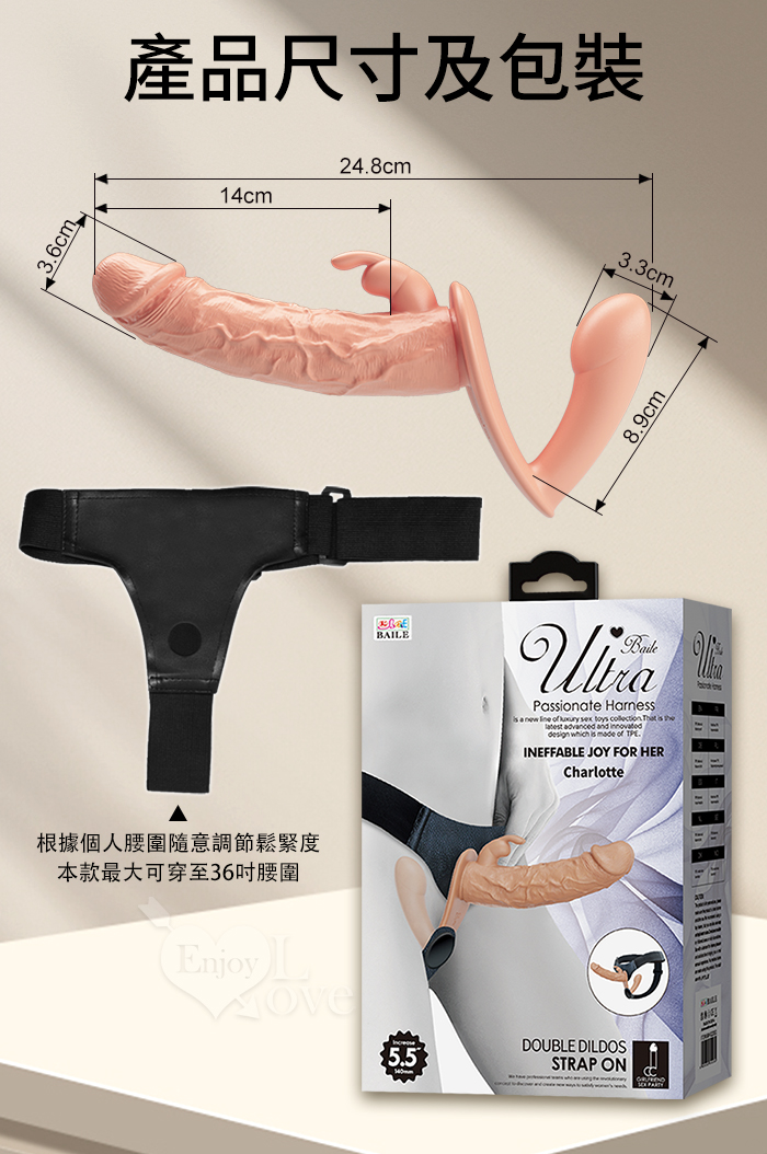 | 【BAILE】Charlotte 夏洛特 立體粗曠逼真視覺盛宴 姐妹雙棒 女女共享雙頭同樂逼真陽具+穿戴褲﹝可拆卸穿戴褲﹞