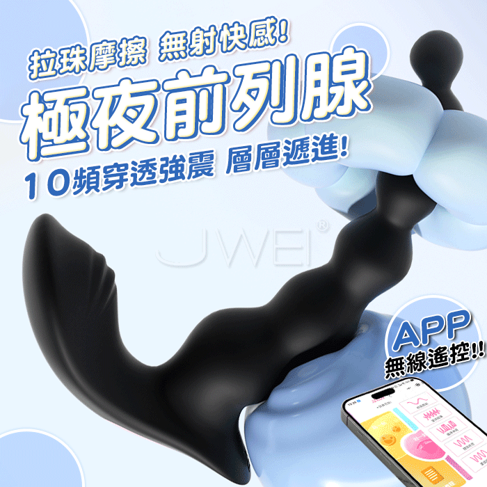 極夜.10頻穿透強震拉珠摩擦 無射快感APP異地遙控前列腺按摩器