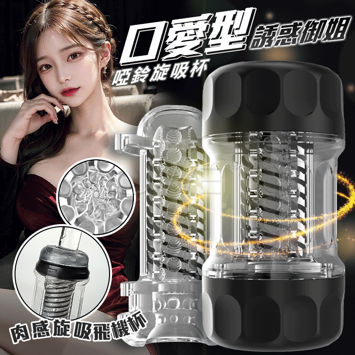 GALAKU.啞鈴旋吸杯 誘惑御姐 肉感旋轉手動負壓吮吸降敏飛機杯-口愛款【黑色】