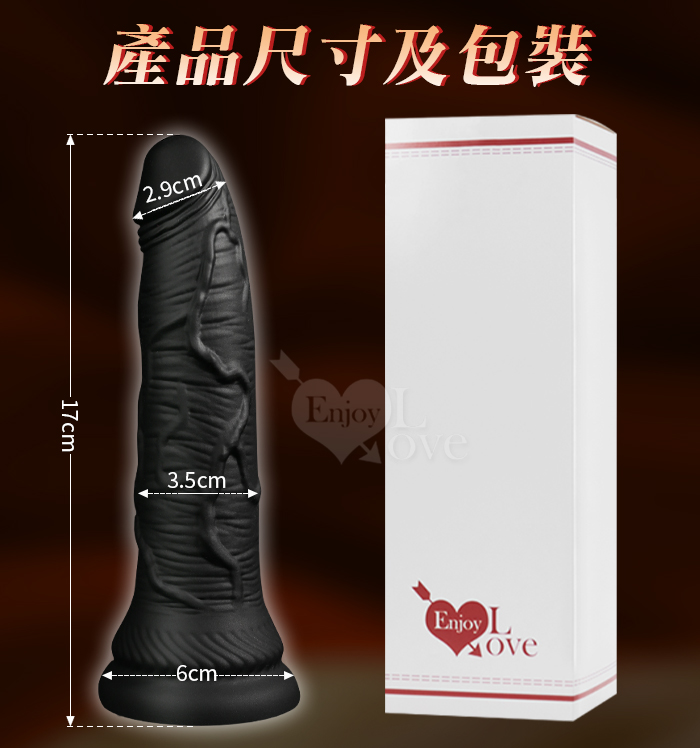 萌屌 ‧ 真肉感矽膠軟Q肉彈加固吸盤仿真老二棒﹝黑色﹞適合東方女性