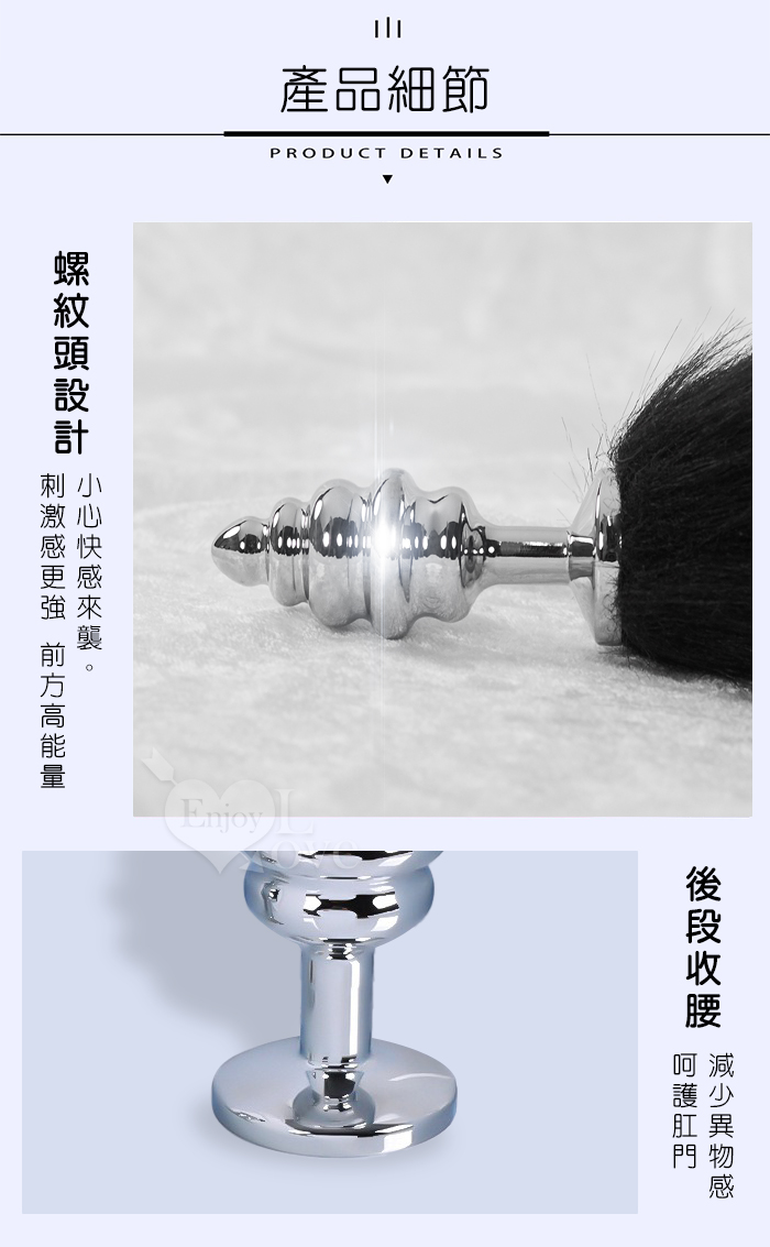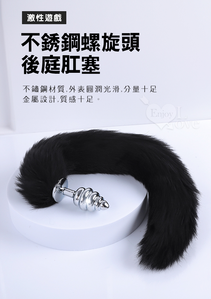 | Sporting激性扮演遊戲 ‧ 人造毛尾巴+不銹鋼螺旋頭後庭肛塞 - 黑﹝可組裝拆卸﹞