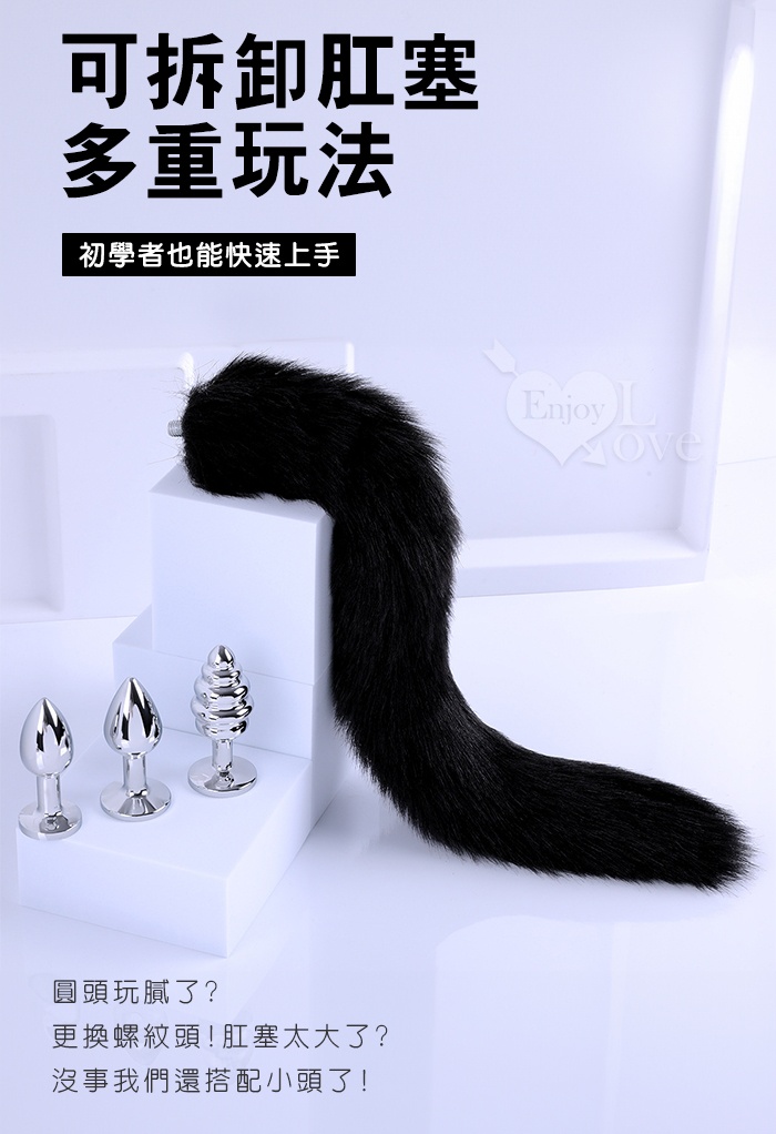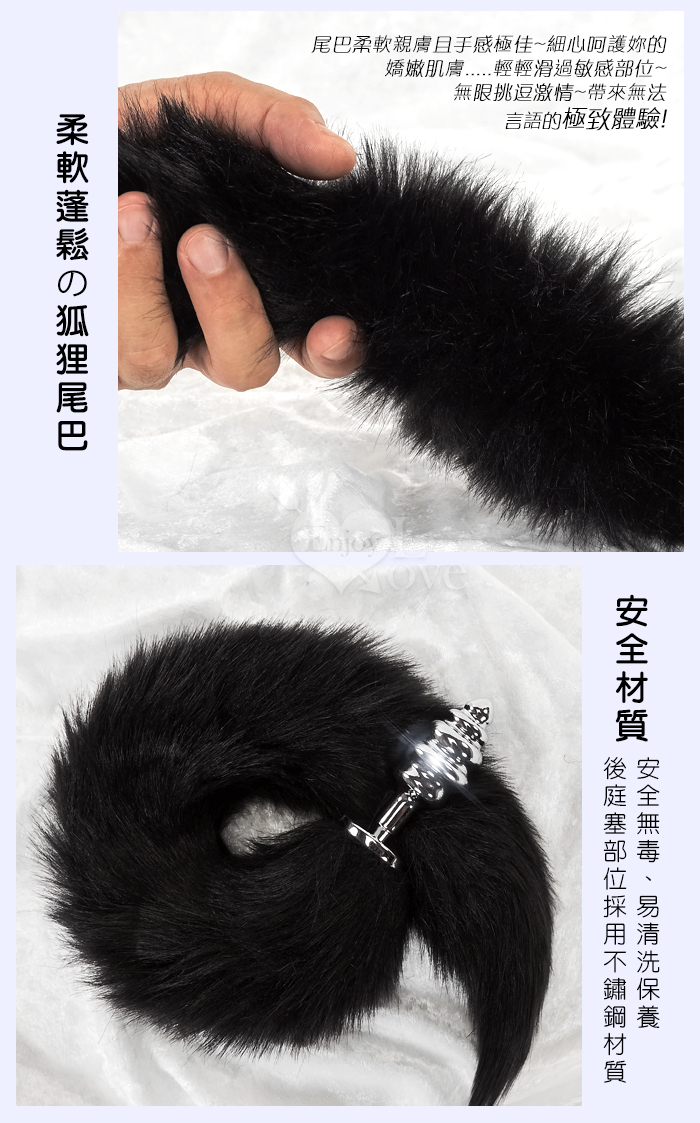 | 激性扮演狐狸精 ‧ 不銹鋼後庭肛塞+尾巴毛 - 黑﹝S 可組裝拆卸﹞