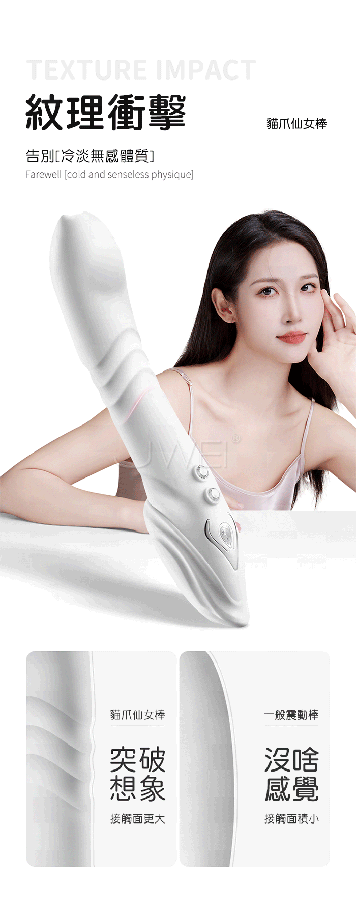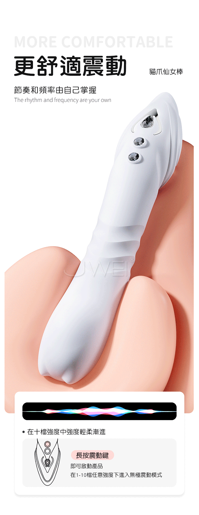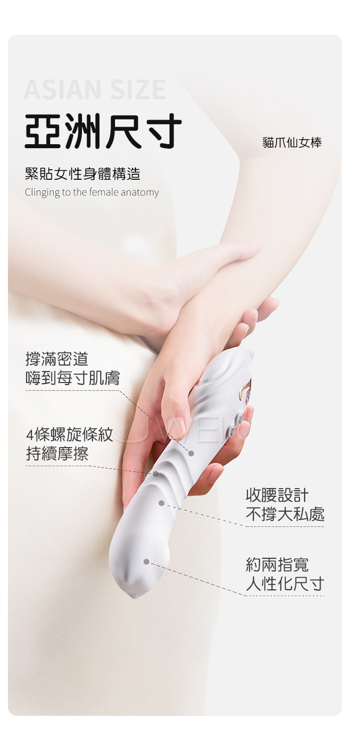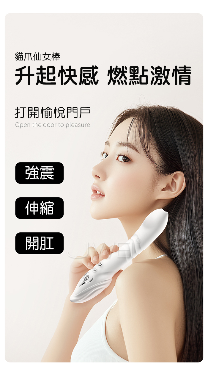 猫爪仙女棒 升起快感 燃點激情,打開愉悅門戶 3段奮力伸縮前進探縮高深處高潮,舒適震動自己掌握 M型接觸面,仿指尖觸感來回揉撥,紋理衝擊突破想像!! 產品規格 ■材質: ABS+矽膠 ■規格: 詳如圖片標示 ■特色: 3頻伸縮、8頻震動、加溫