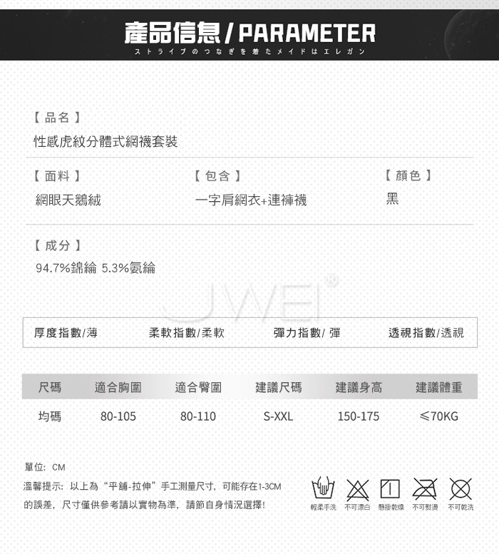 2.基於保障消費者個人衛生,情趣衣物類恕不接受退換貨,如為商品本身暇疵,接受三日內換貨,請勿試穿。