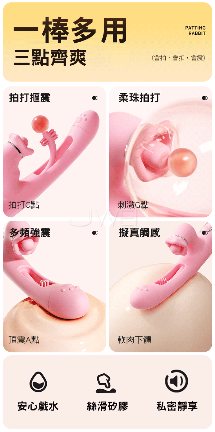 ►您現在的位置:首頁>謎姬 MizzZee.拍拍兔.7頻G點摳潮+7頻C點柔珠口愛 強震摳G拍打棒