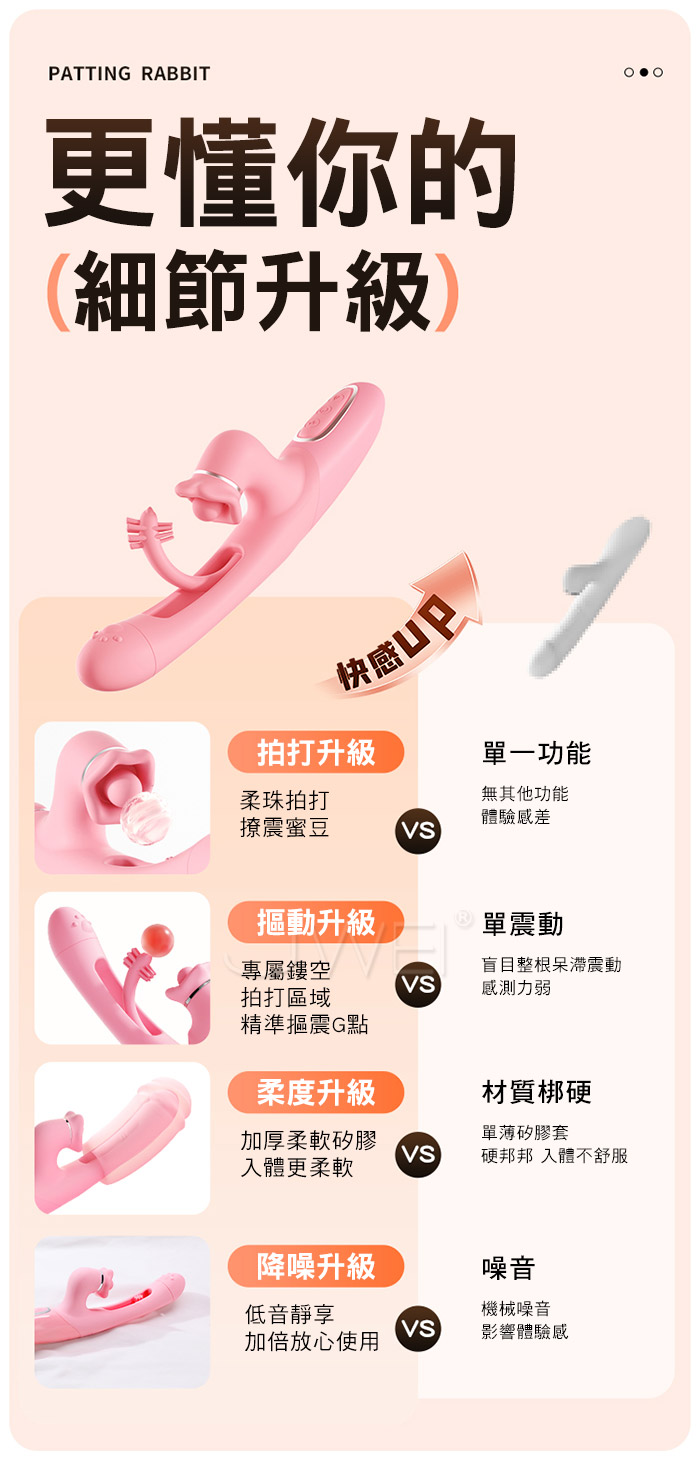 | 謎姬 MizzZee.拍拍兔.7頻G點摳潮+7頻C點柔珠口愛 強震摳G拍打棒 優惠價 $874 | ||
