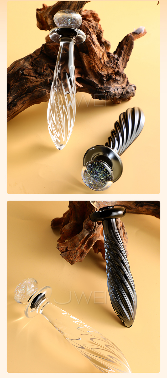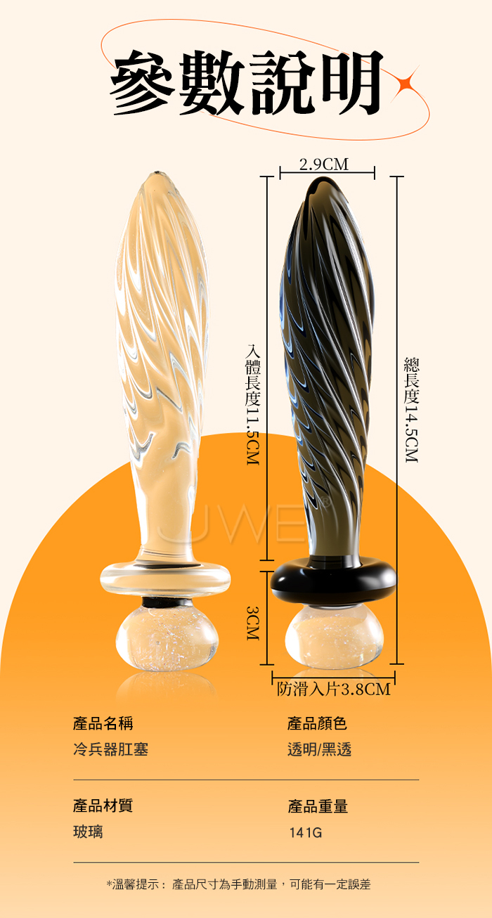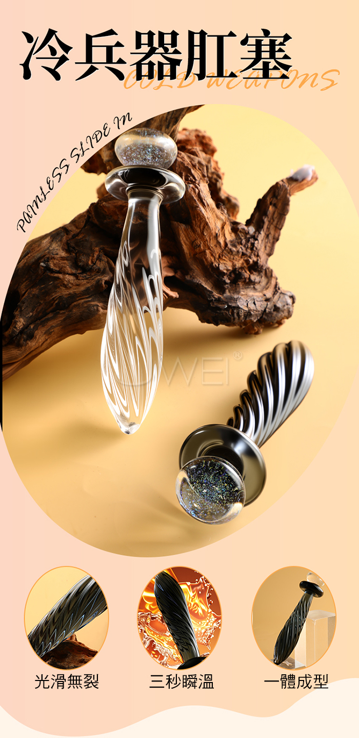 | 冷兵器.圓潤尖頭環形螺紋冰火雙體驗玻璃後庭肛塞【透黑】