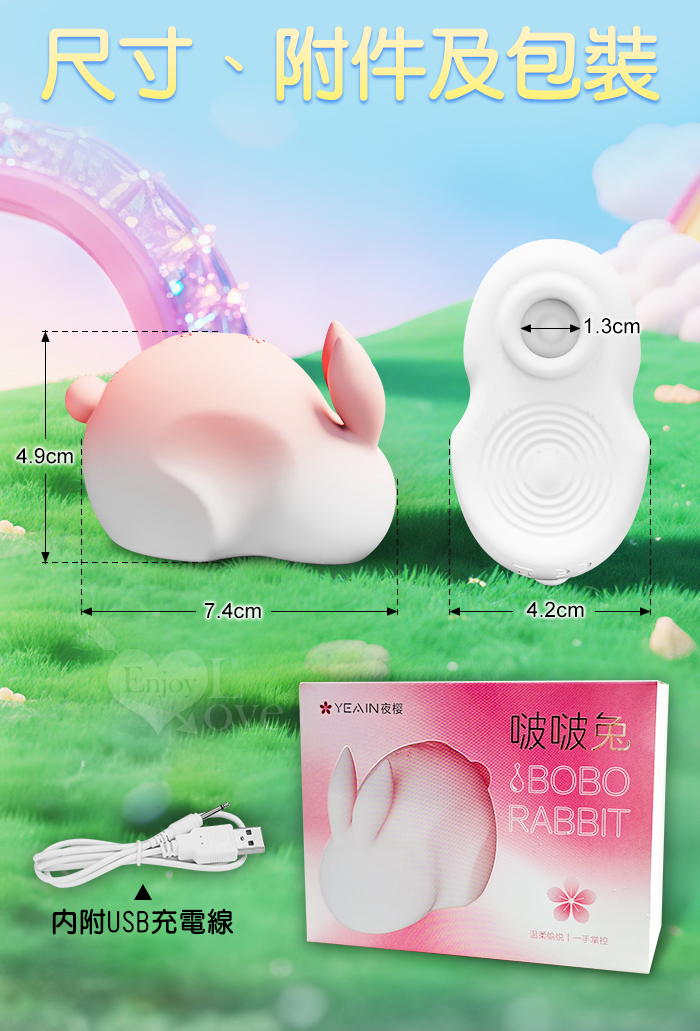►您現在的位置:首頁>YEAIN夜樱 ‧ BOBO 啵啵兔 深層吮吸+拍打+震動來寵按摩器~迷漾白漸變粉色