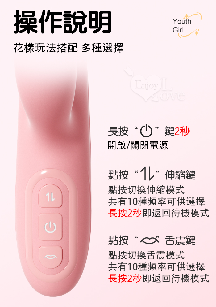 | 勞樂斯.愛潮~舌吻伸縮多功能按摩棒﹝10頻伸縮+10頻舌撩震+USB便捷充電﹞ 優惠價 $618 | ||