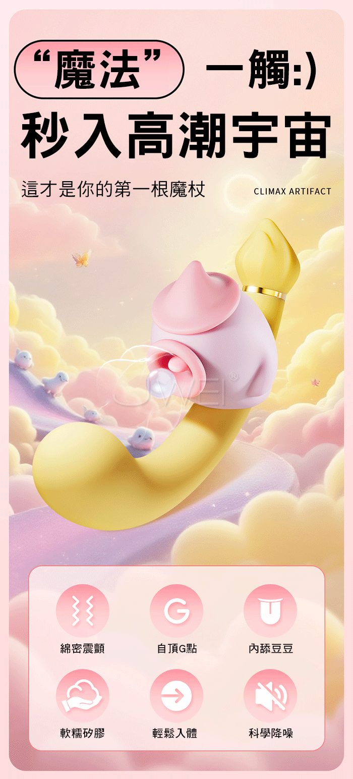 | 魔法摸杖.8頻邊舔邊震 自動頂潮 軟萌U型上翹G點刺激按摩棒