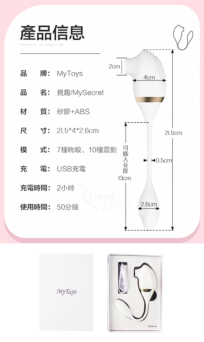 | Mytoys.MySecret 覓趣 手機APP遙控 7x10段雙馬達吸吮式+震動跳蛋 內吸外震雙重高潮按摩器﹝具兩種操控模式﹞