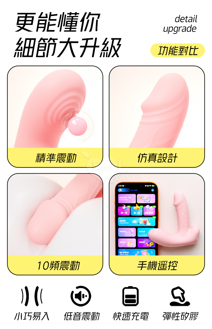 | ROSELEX 上舔下頂 入體伸縮舔震三合一 10頻雙馬達貼合穿戴按摩器 - 可手機APP遙控﹝具兩種操控模式﹞粉