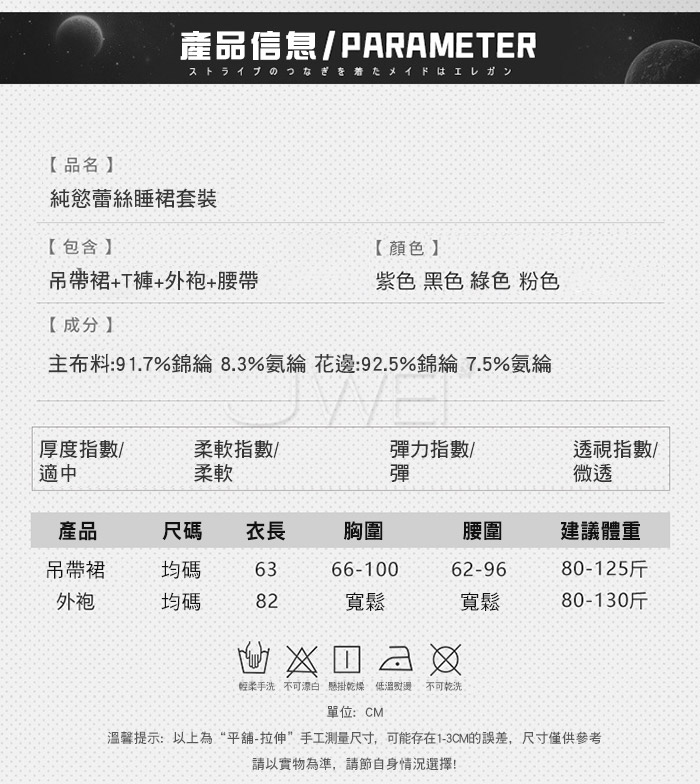 ■內容物:吊帶裙+T褲+外袍+腰帶