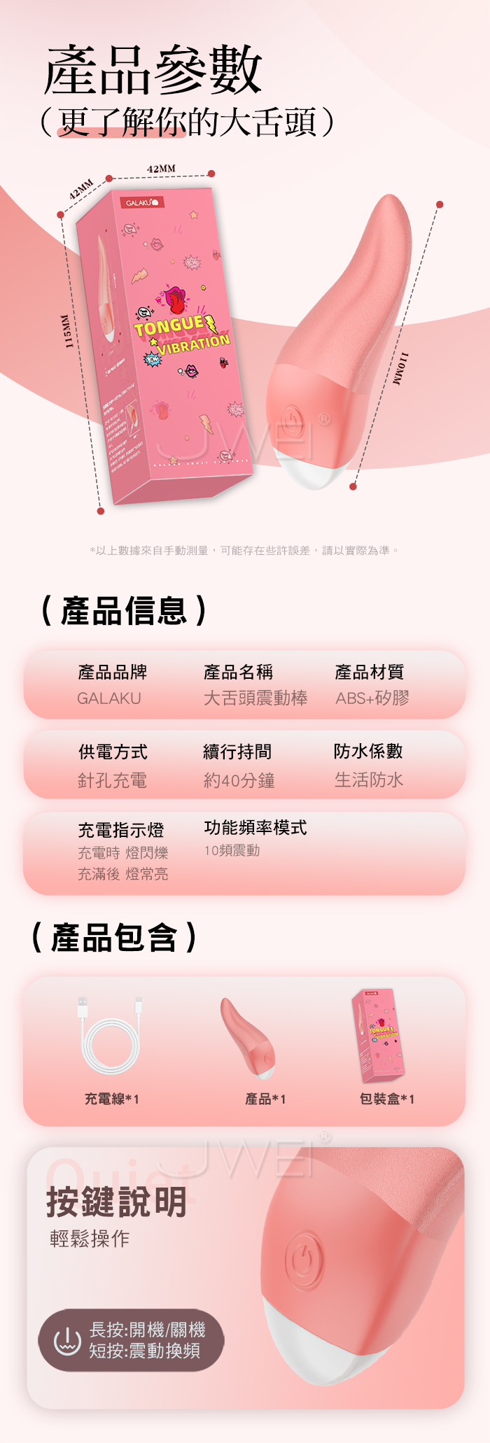 ►您現在的位置:首頁>GALAKU.大舌頭 10頻強震淺撩深舔 仿真舌頭舔震G點按摩棒