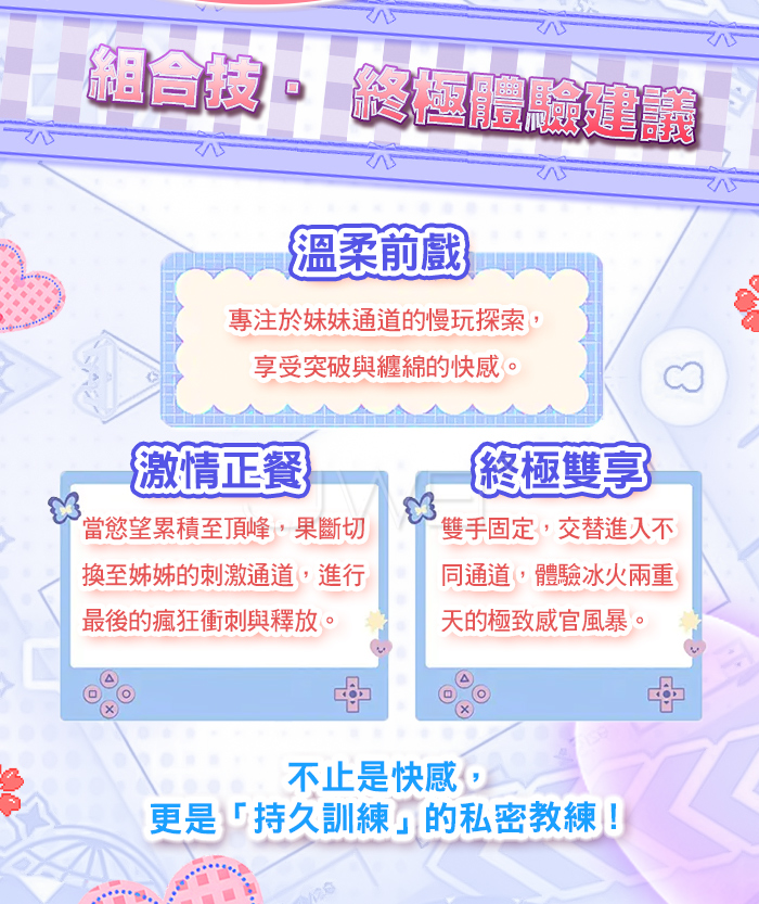 4通道玩法多樣,慢玩纏綿+刺激衝刺,妹:緊縮螺紋+仿貞膜;姐:大波浪+吸吮顆粒