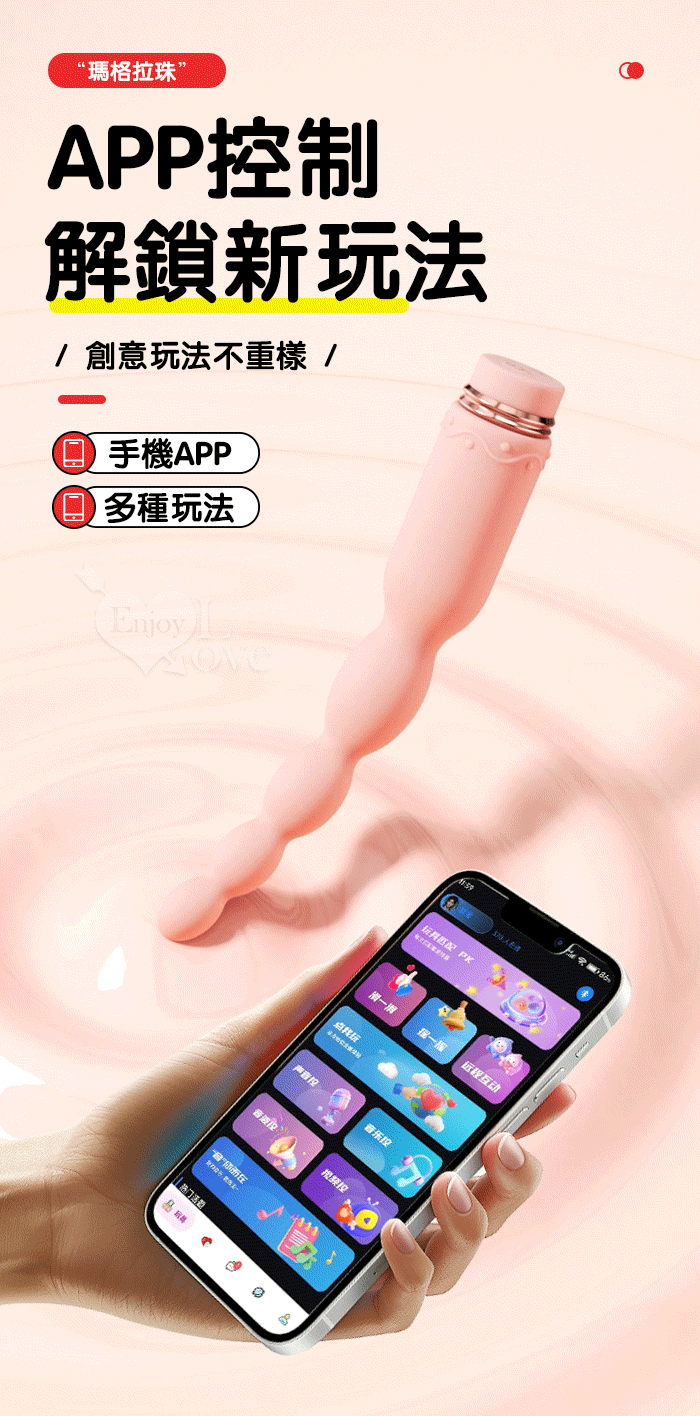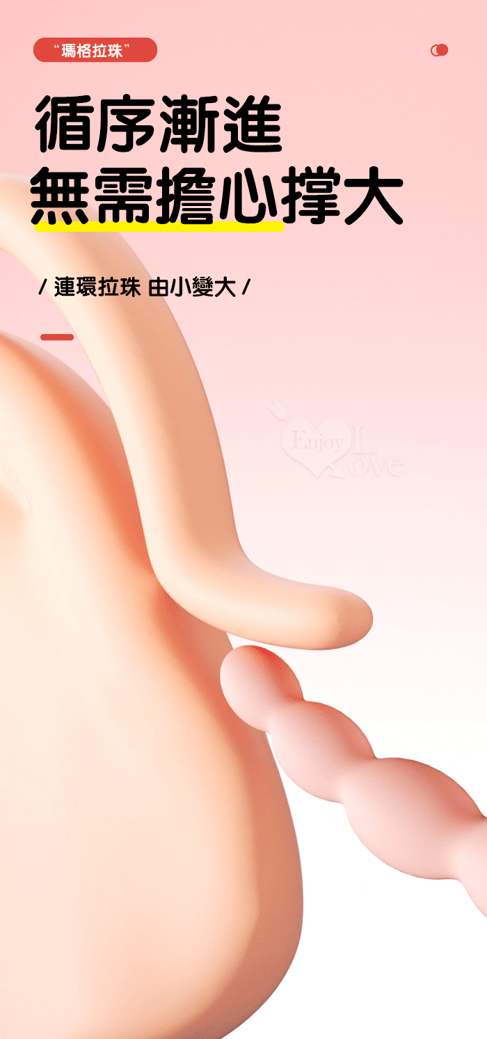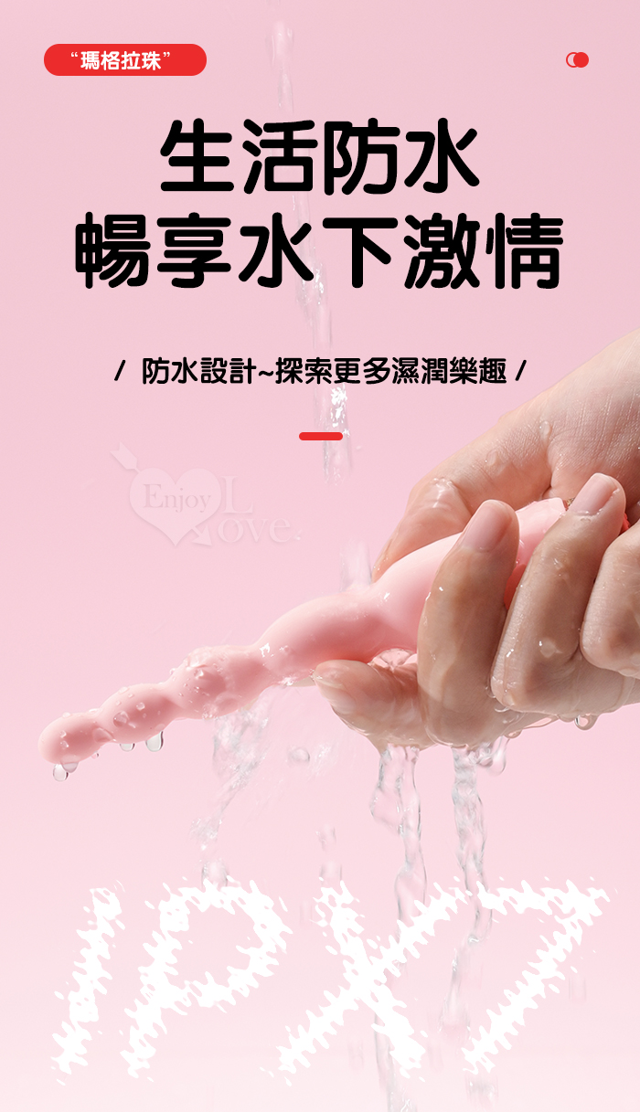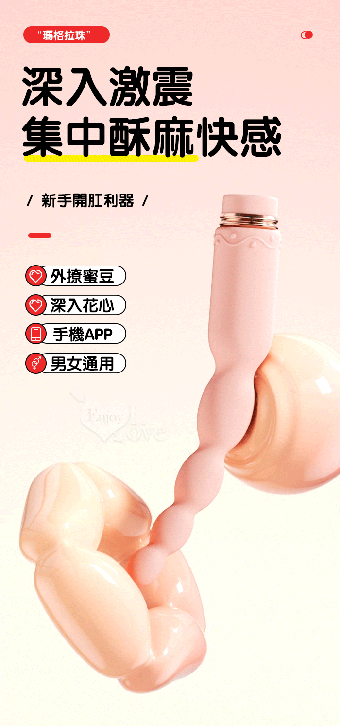 ROSELEX 新手玩家 瑪格連環拉珠按摩棒~10頻強勁震動/細小易入/男女通用/可手機APP遙控﹝具兩種操控模式﹞粉