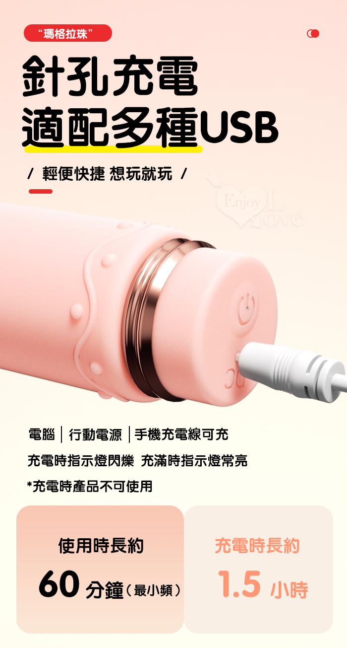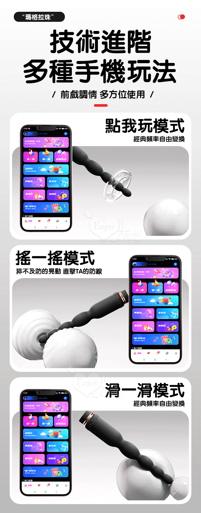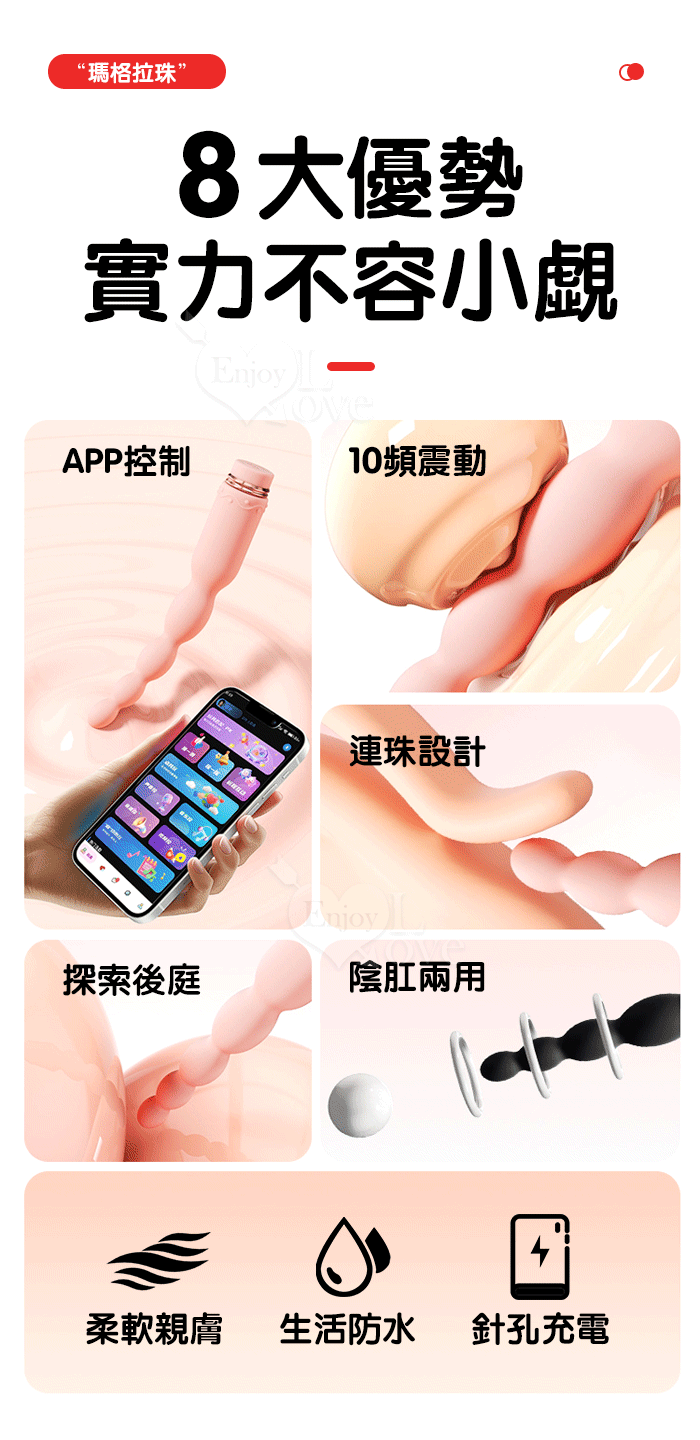 ROSELEX 新手玩家 瑪格連環拉珠按摩棒~10頻強勁震動/細小易入/男女通用/可手機APP遙控﹝具兩種操控模式﹞粉
