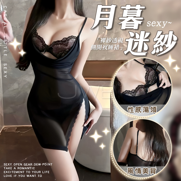 | 甜欲佳人.性感純欲深v蕾絲誘惑透視睡裙-白色