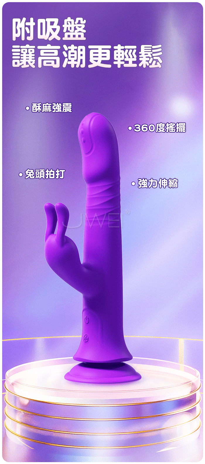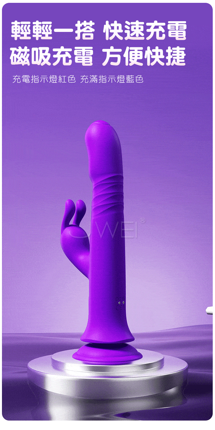 搖擺伸縮 拍打強震,多種玩法 三點共潮,一棒享受三種不同的高潮 不是真人 超越真人,花式玩法 解放雙手,強力搖擺伸縮,激顫兔頭拍打 強力吸盤固定,入體強撩,10頻搖擺+伸縮+激震,強動力不卡機,勇猛強勁看的見~ 產品規格 ■材質: 矽膠+ABS ■規格: 詳如圖片標示 ■功能: 10頻搖擺伸縮震動,10頻兔頭拍打