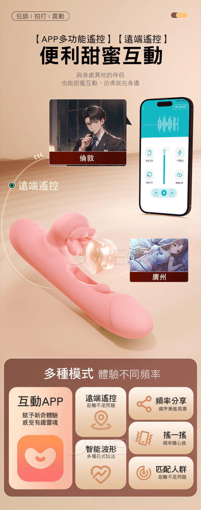 全方位激發快感 · 夢幻升級體驗三點同頻,高潮層層疊加 多重享受,快感持久不斷,撩撥入體 · 三重快感同步 可單點刺激,也能全方位攻擊外撩蜜豆、內震深層,全面喚醒欲望 仿真舌舔 · 深層快感直達,狂舔蜜豆,震穿C點 快感如潮,瞬間麻爆全身,強烈震撼,帶來無盡顫慄,一次體驗,難以忘懷。 產品規格 ■材質: 矽膠+ABS ■規格: 詳如圖片標示 ■功能: 10頻震動、10頻舌舔、10頻扣動、APP智控