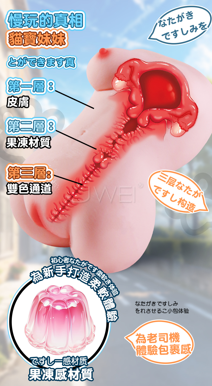 貓寶妹妹. 可愛軟萌雙層陰唇 擬真吮吸子宮腔 果凍感雙色自慰套