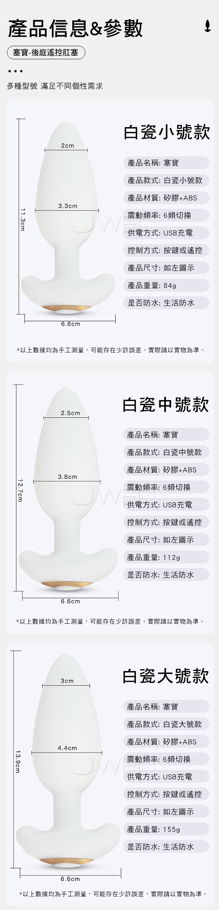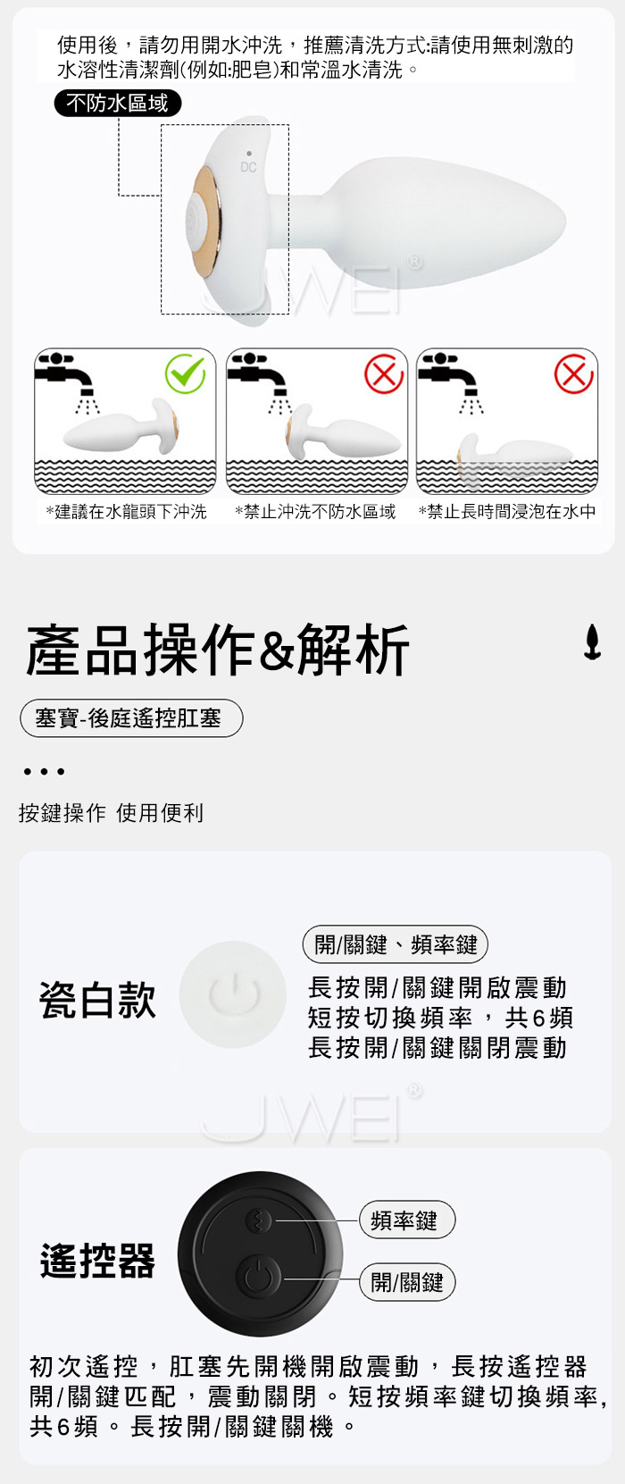 塞寶-後庭遙控肛塞 探索神秘後庭 花樣6頻強震 每一次震動都是不同的體驗 貼合股縫 舒適配戴 上班上課偷偷玩 ■尺寸:大小詳如圖片標示 ■材質:矽膠+ABS ■特點: 6頻震動