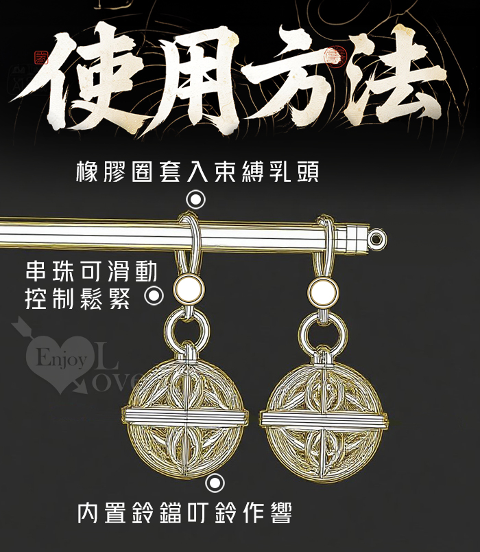 SM宮鈴乳夾 ‧ 矽膠皮圈鈴鐺雙乳夾~情趣調教玩具﹝一對裝﹞