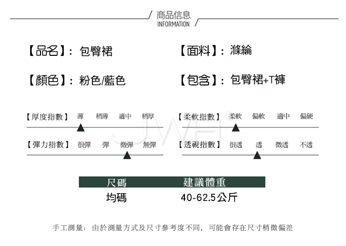 ■內容物:包臀裙+T褲 ■適穿尺寸:FREESIZE ■彈性:有 ■未撐開平量尺寸正負誤差1~2cm,1吋=2.54cm ■注意事項:基於保障消費者個人衛生,此貼身衣物恕不接受退換貨。 (如為商品本身暇疵,接受七日內換貨,請勿試穿,謝謝您)