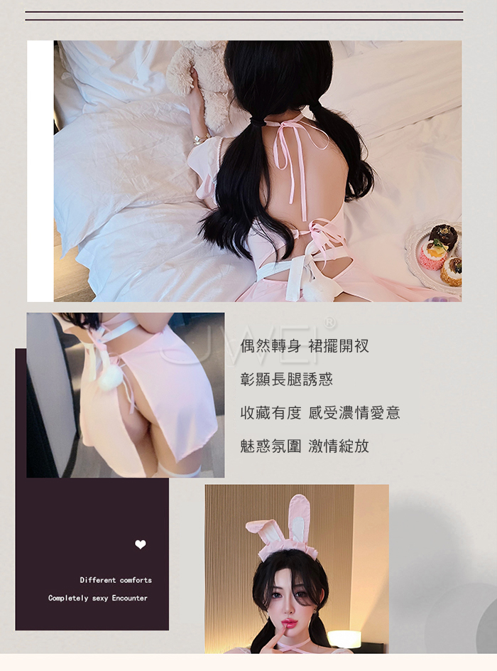 ■內容物:兔耳朵+連衣裙+圍裙+腿環+丁字褲