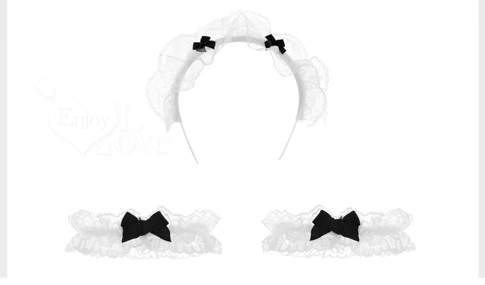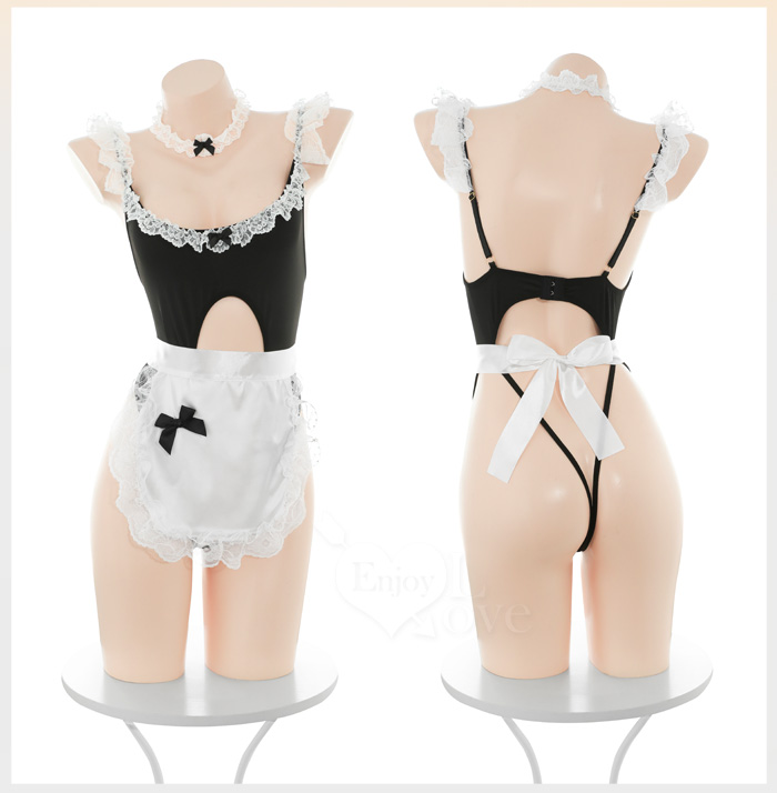 | 女僕角色扮演服|U領花邊・可調肩帶裸臀連身衣 × 造型圍裙 六件式套裝