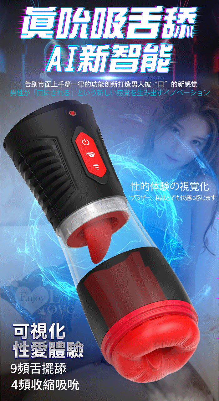 ►您現在的位置:首頁>Hgod 007-II ‧ AI新智能自動舌舔+吞莖吮吸快感電動飛機杯﹝4頻收縮吸吮X9頻舌擺舔+淫聲耳機+手機架﹞