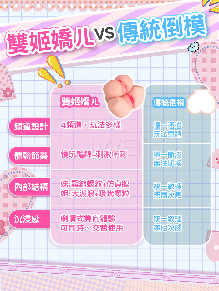 雙姬嬌儿,禁忌の雙子幻想~一體雙享 次元雙生,雙姬合體,解鎖你の獨佔物語!! 4通道玩法多樣,慢玩纏綿+刺激衝刺,妹:緊縮螺紋+仿貞膜;姐:大波浪+吸吮顆粒 擬真肌膚材質,觸碰真實軟妹,清爽觸感 不易出油,你就是這場物語の唯一男主角!! 產品規格 ■尺寸:大小詳如圖片標示 ■材質:TPE ■重量:約2.5kg ■特點:四通道、小陰落紅